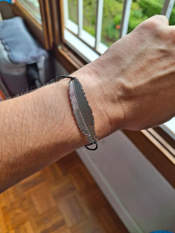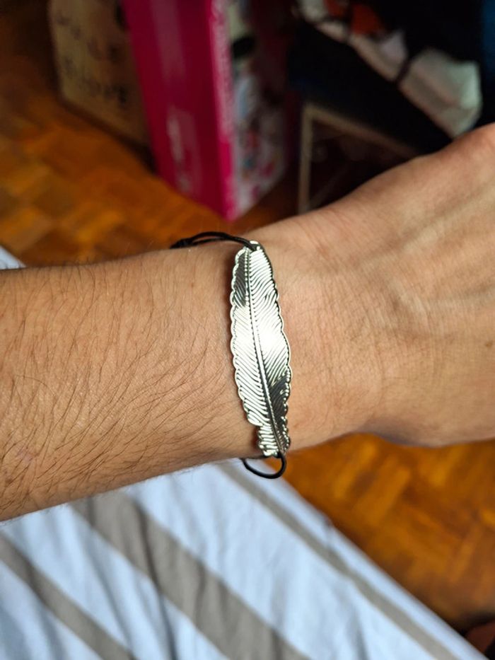 Bracelet noire plume argenté vintage - photo numéro 4