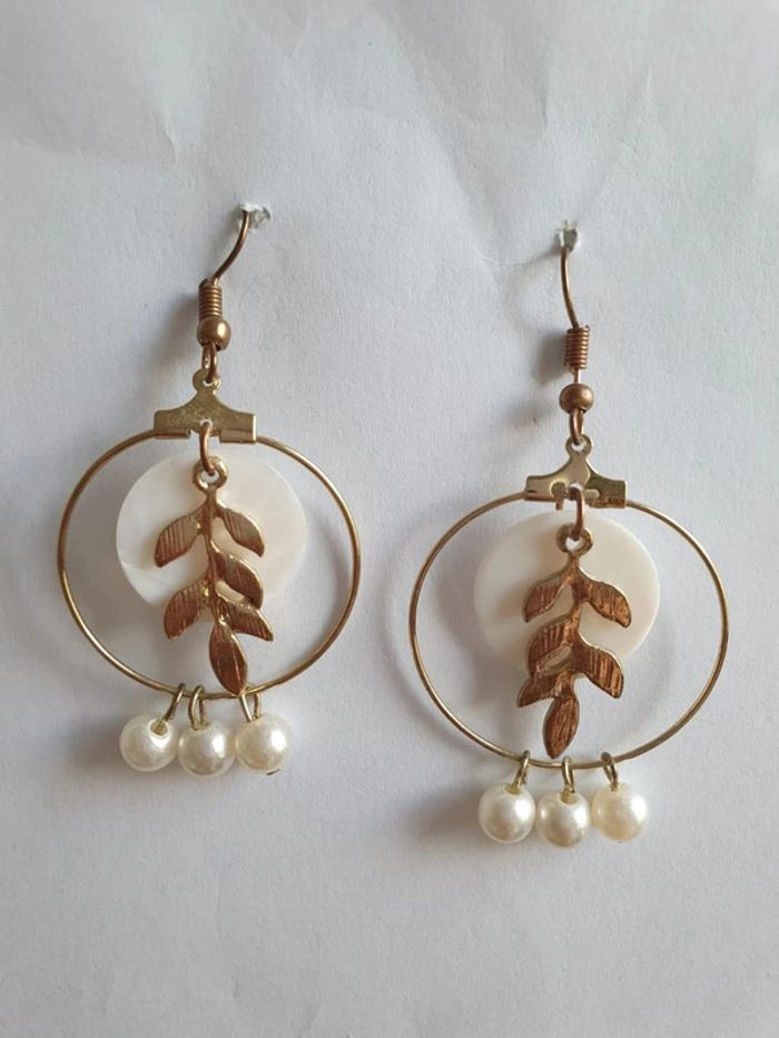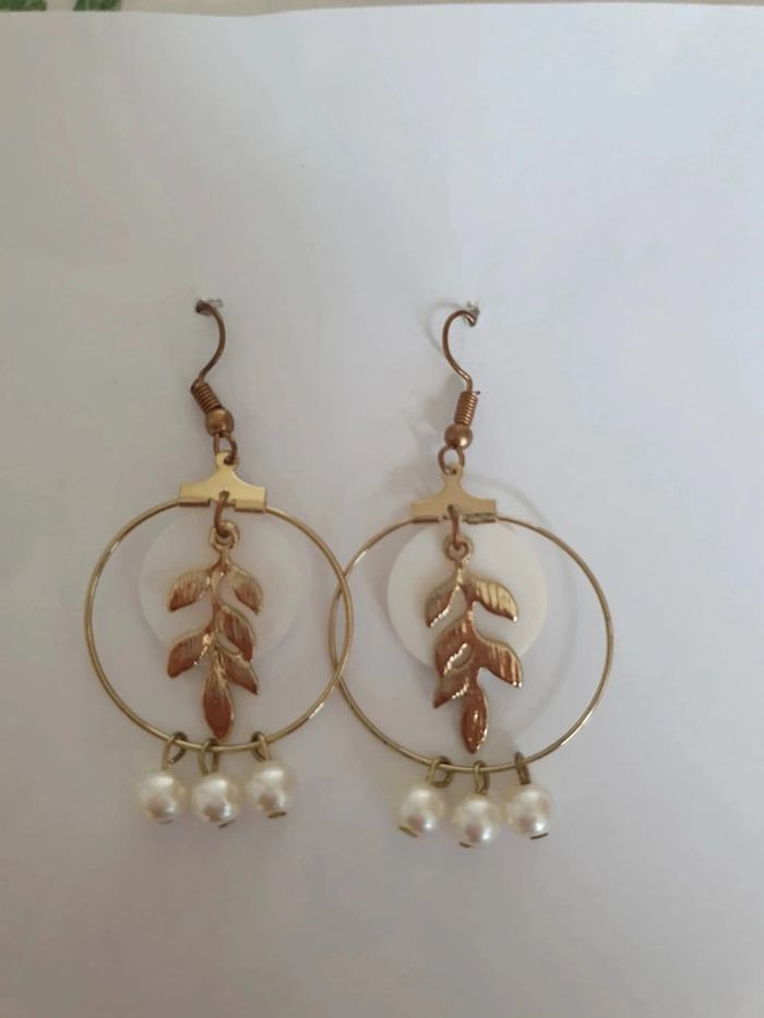 Boucles d'oreilles blanches dorées perles vintage - photo numéro 2