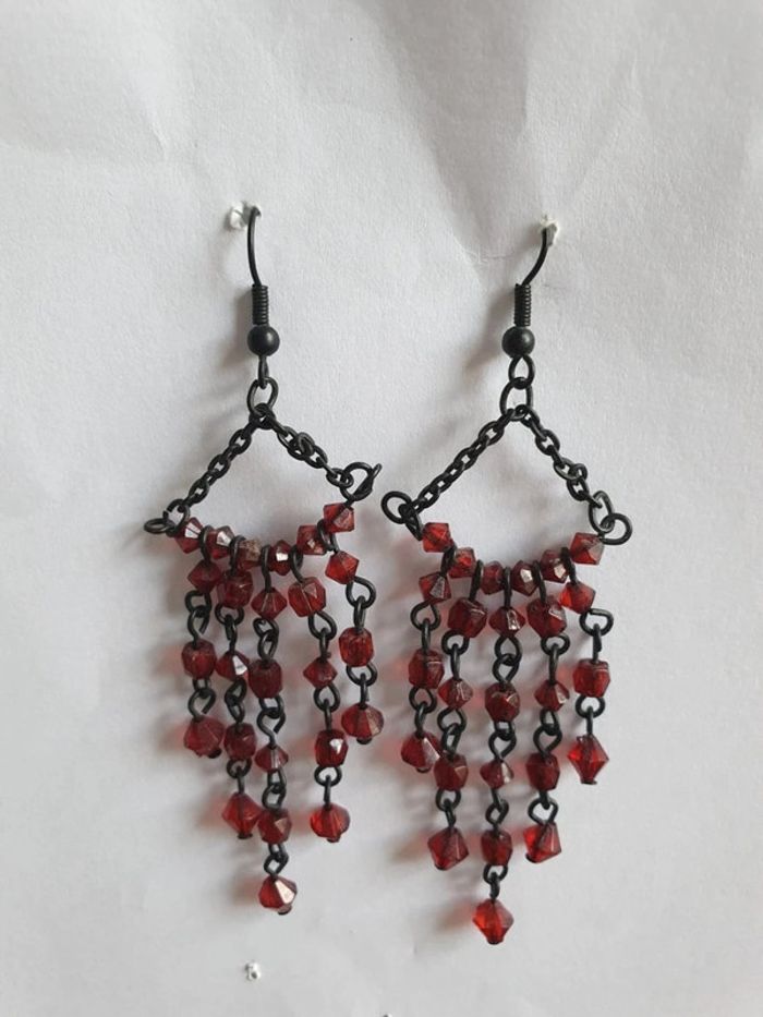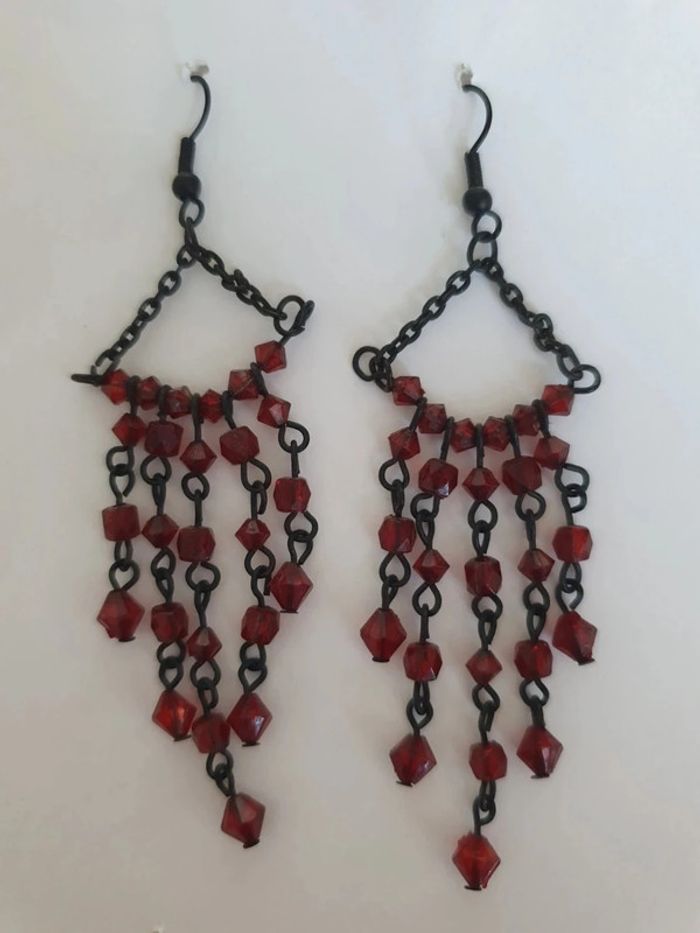Boucles d'oreilles bordeaux perles vintage - photo numéro 2