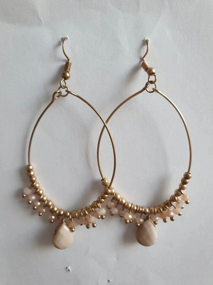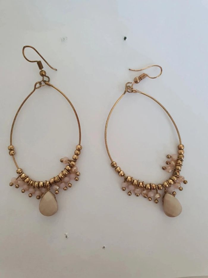 Boucles d'oreilles doree rose perles vintage - photo numéro 2