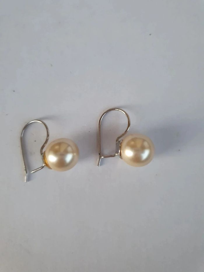 Boucles d'oreilles vintage perles culture blanc creme beige argenté fantaisie - photo numéro 2