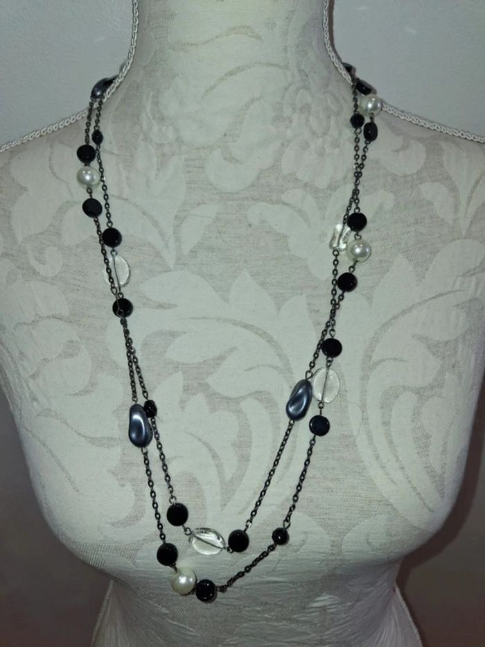 Collier noir argenté et transparent vintage