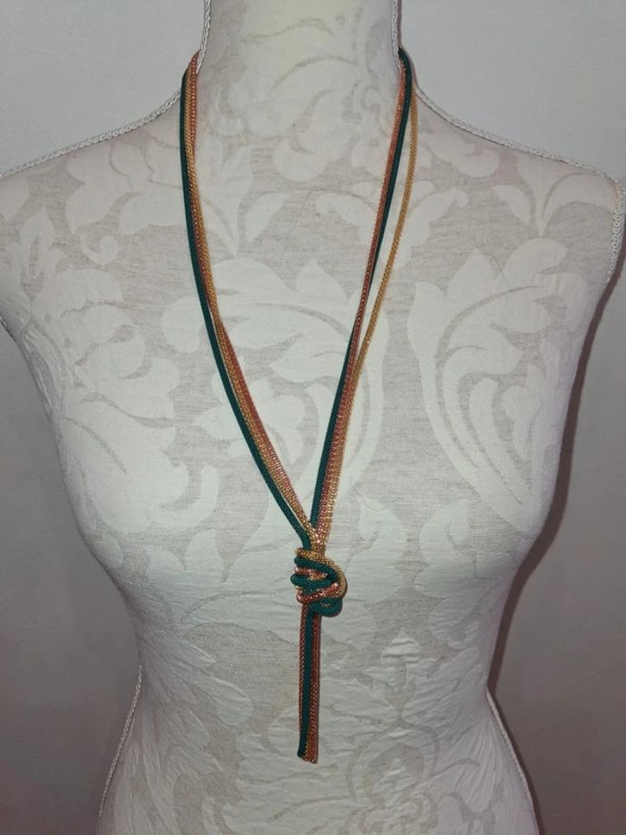 Collier entrelasse vert rose doré neuf eram vintage - photo numéro 1