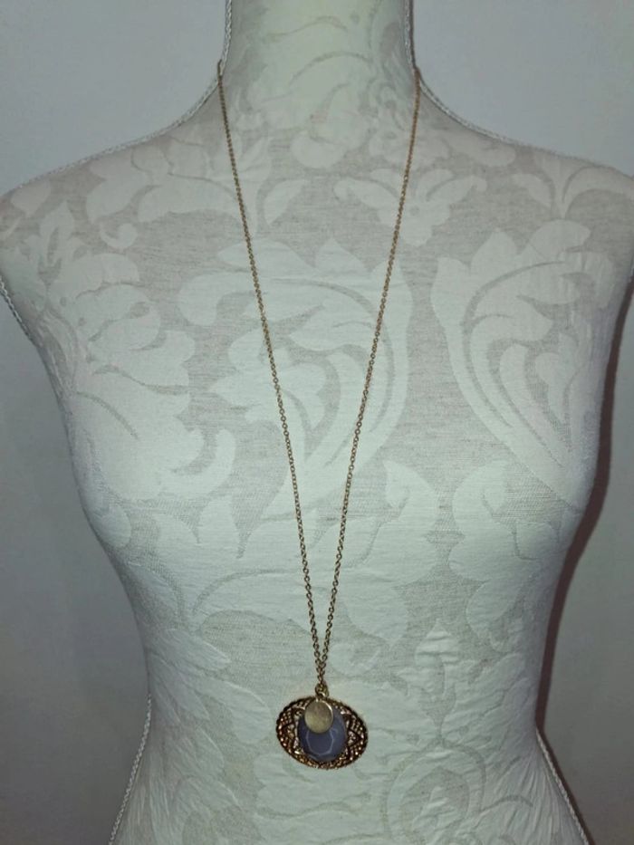 Collier sautoir dorée violet parme vintage - photo numéro 1