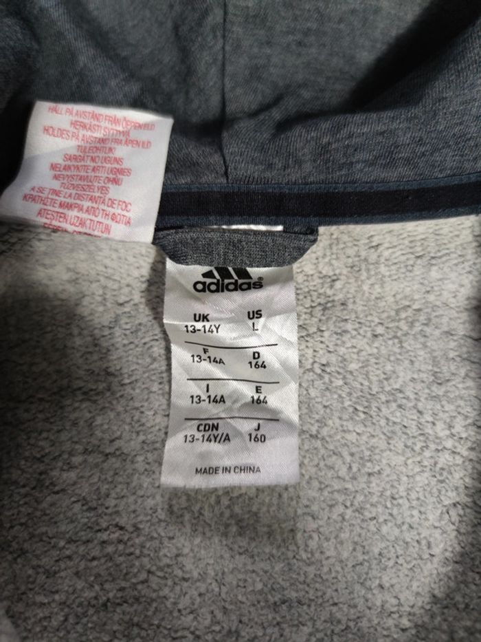 Veste à Capuche Full Zip Adidas Gris Foncé Logo Brodé Noir Taille XS - photo numéro 11
