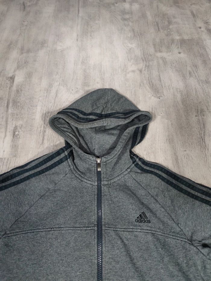 Veste à Capuche Full Zip Adidas Gris Foncé Logo Brodé Noir Taille XS - photo numéro 4