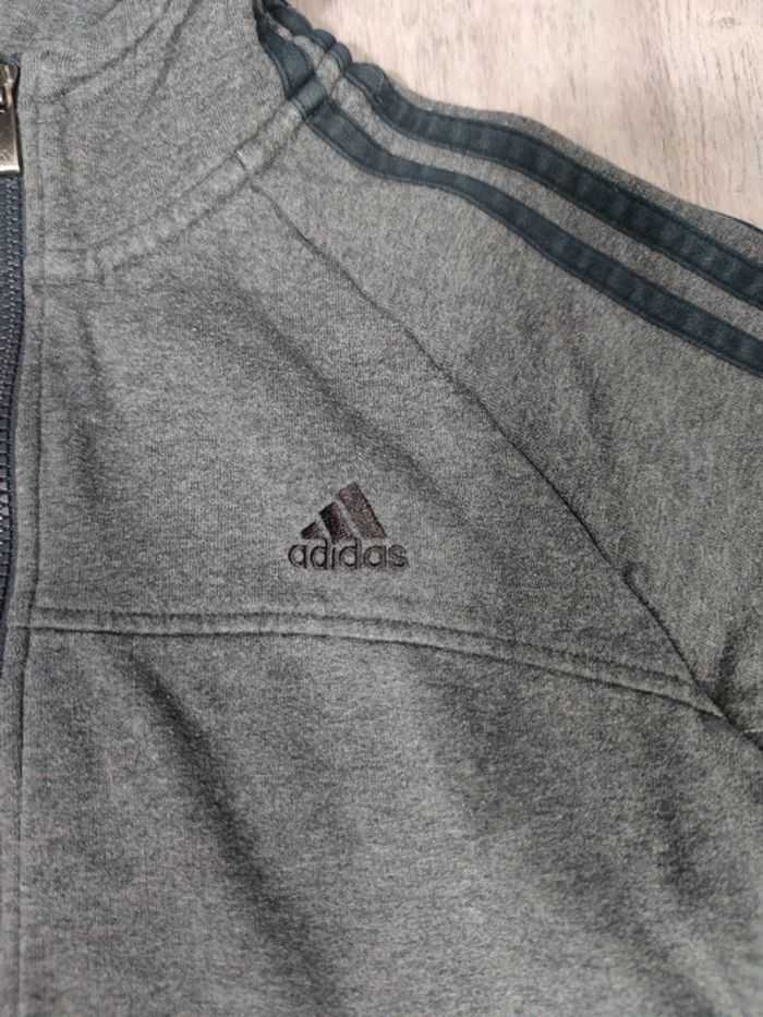 Veste à Capuche Full Zip Adidas Gris Foncé Logo Brodé Noir Taille XS - photo numéro 5