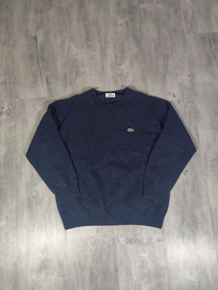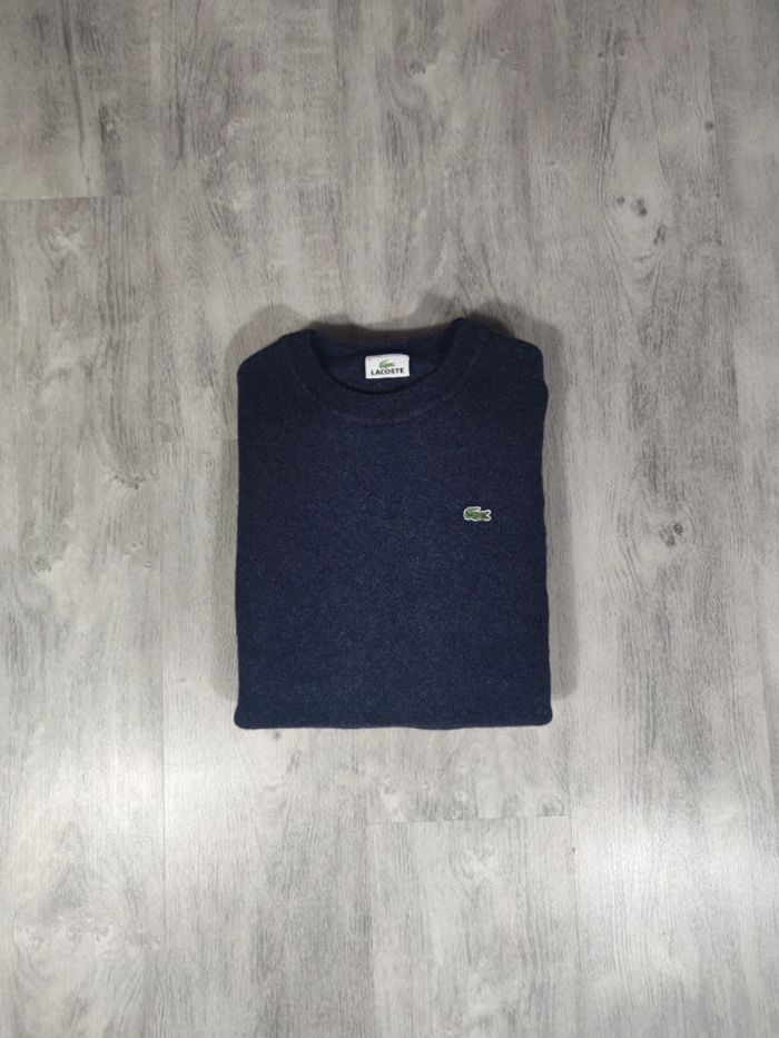 Pull Crewneck Lacoste Pure Laine Vierge Bleu Marine Logo Brodé Taille XS Femme - photo numéro 1