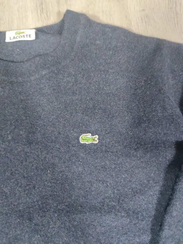 Pull Crewneck Lacoste Pure Laine Vierge Bleu Marine Logo Brodé Taille XS Femme - photo numéro 5