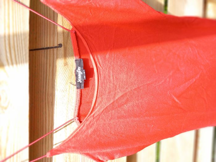 Débardeur rouge Bretelles élastiques Plus d'étiquette composition, matière élastique Largeur à plat 32 cm Longueur 58 cm S Jennyfer