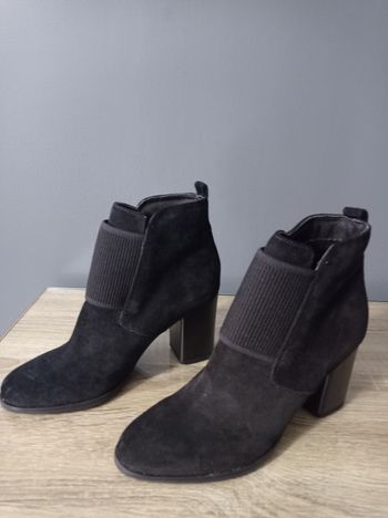 Très bon état. Tout cuir. Talons compensés de 9 cm recouverts de tissu. Valeur neuves 120€