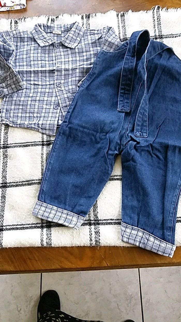 #garçonunansswg Ensemble salopette jeans et chemise garçon taille 1 ans