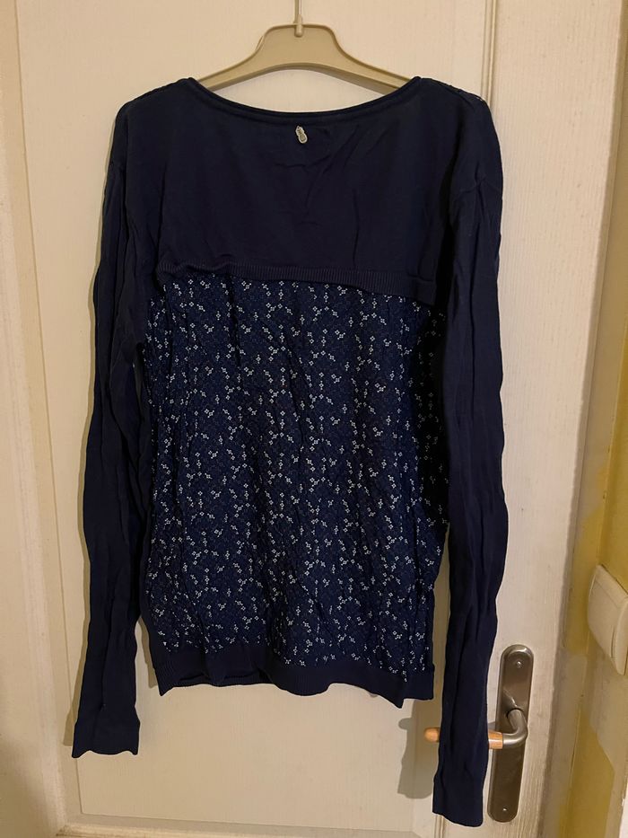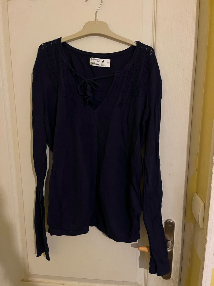 Vends blouse manches longues marine, dos motifs( voir photo 2) en très bon état