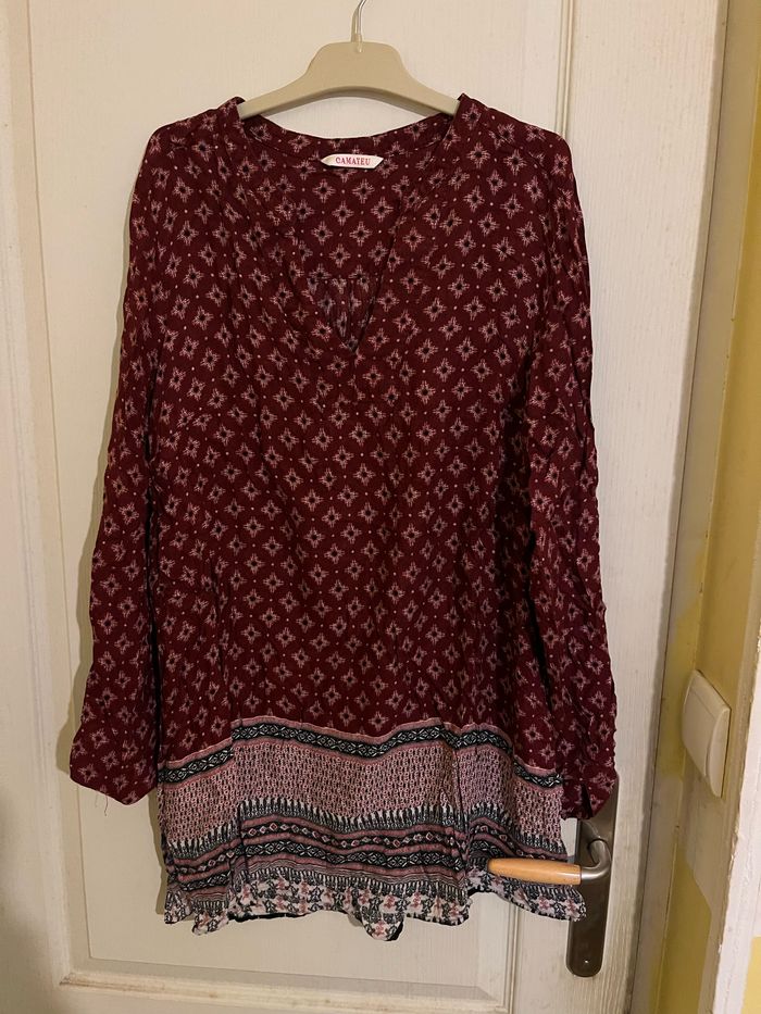 Vends tunique manches longues bordeaux à motifs en très bon état