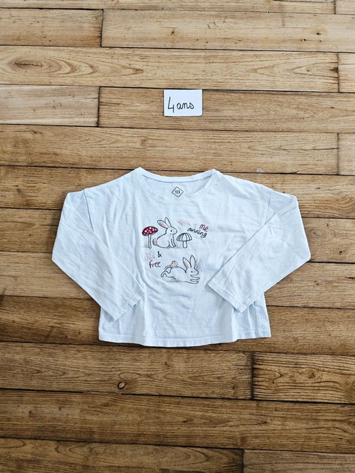 Tee shirt manches longues blanc lapins petite fille 4 ans