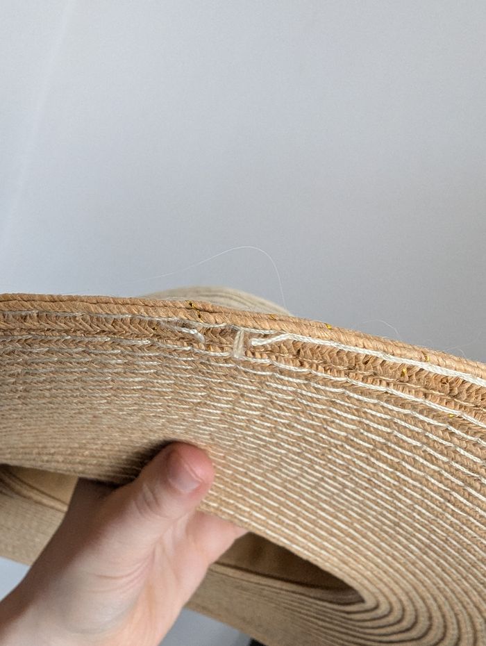 Je vends ce chapeau de paille de type capeline avec ses bords très larges. Attention : Envoi possible MAIS pour il va devoir être plié en 2 ! Donc je ne sais pas la forme qu'il aura à la réception. Taille : 56 Largeur extérieur 43cm Largeur intérieure tête 18cm Utilisé 1 fois et avait déjà ces défauts lors de l'achat.