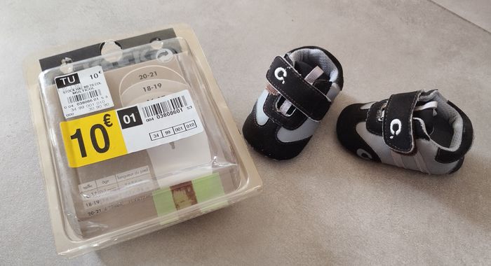 Bonjour, Je vends cette paire de baskets pour garçon en taille 0/3 mois 16/17 en très bon état, peu porté