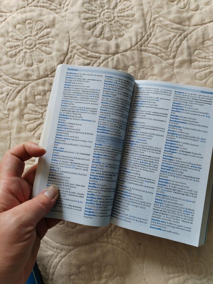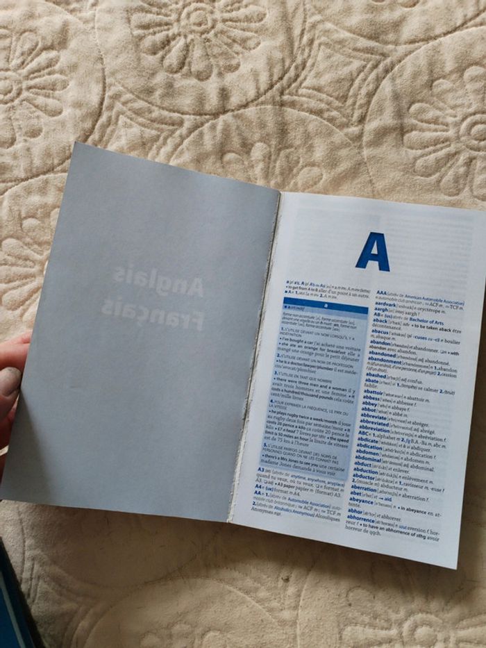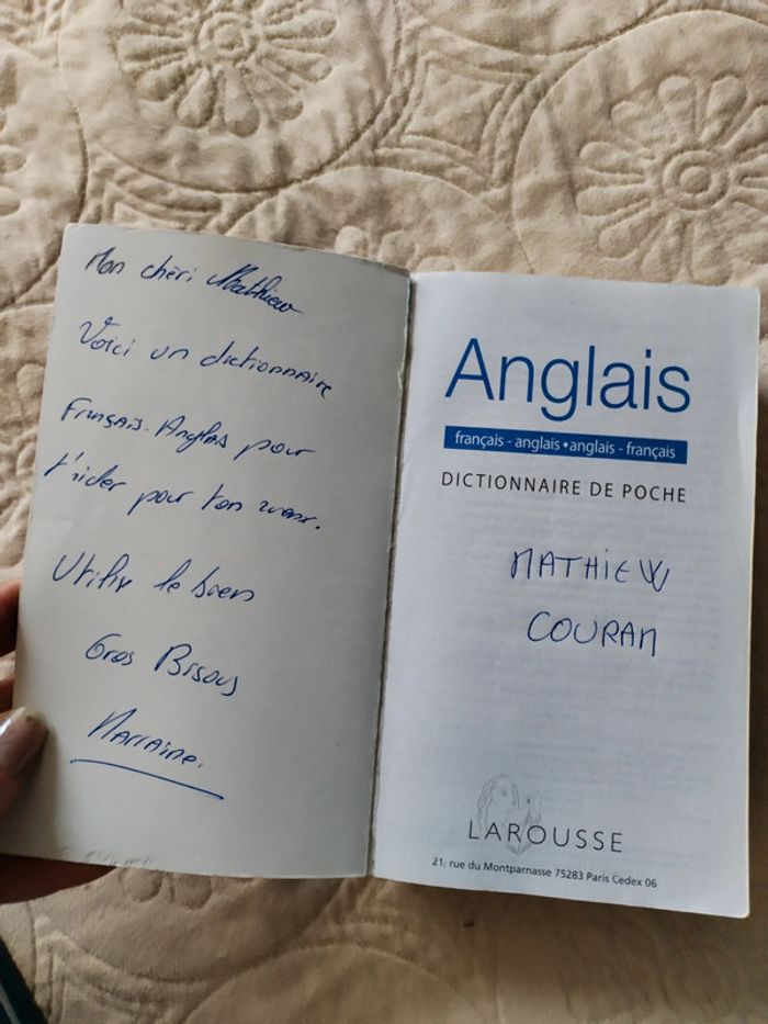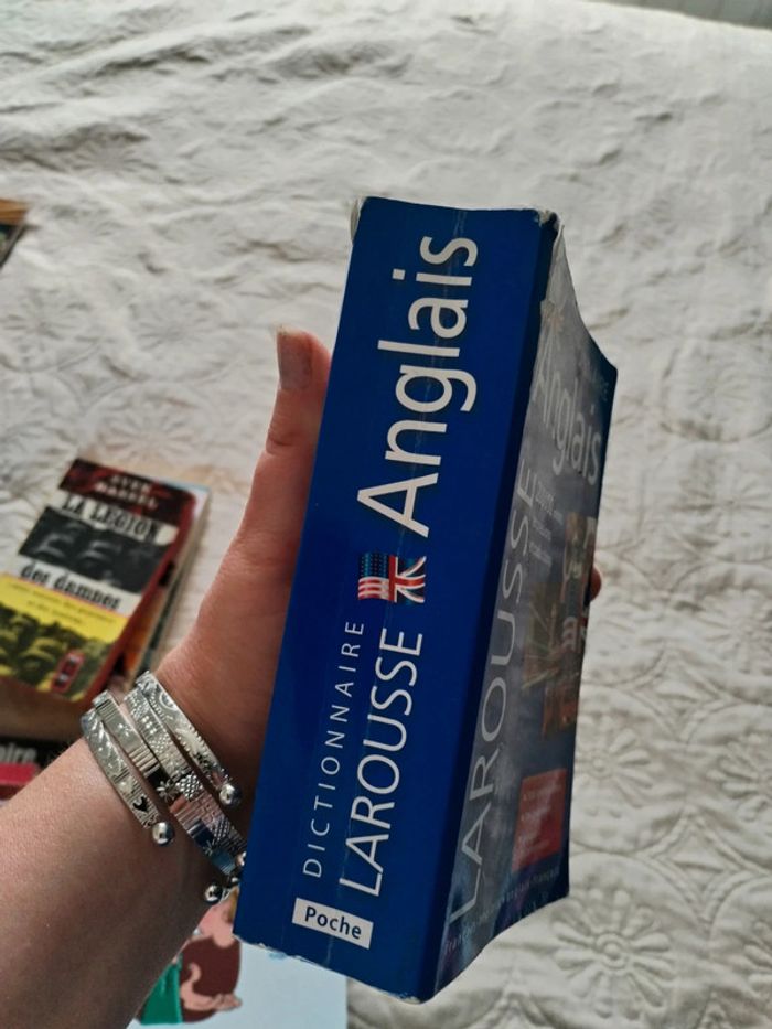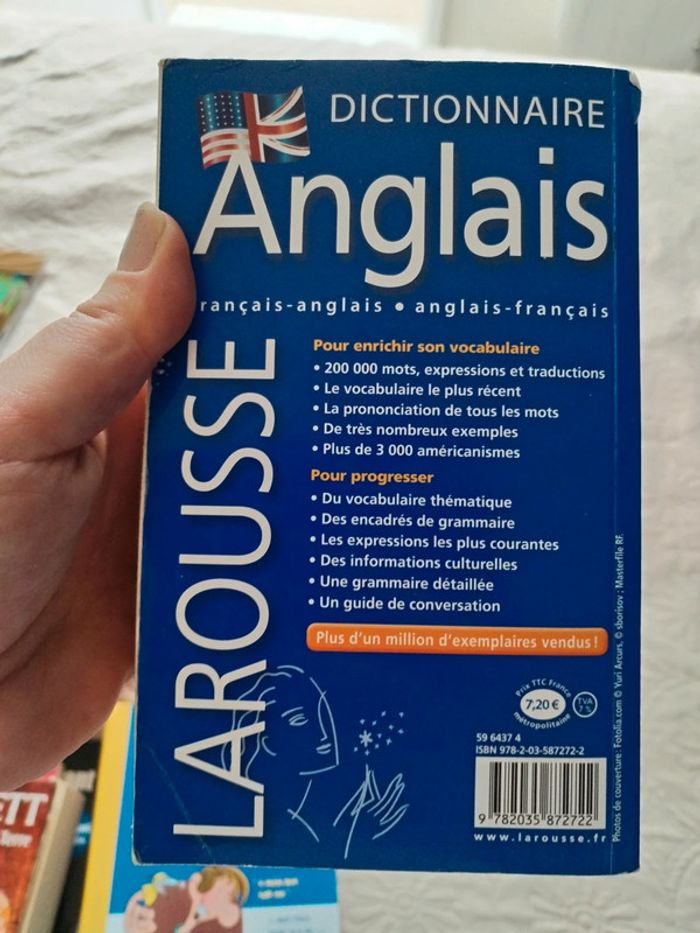 Dictionnaire larousse poche anglais français. Couverture un peu abîmée et page de garde avec des écritures.