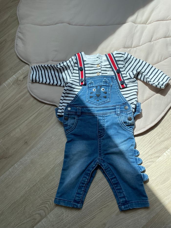 Ensemble 3 mois Pull marinière tape à l’œil Salopette orchestra Excellent état