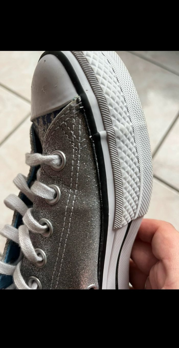 Quasiment neuve, acheté en brocante Elles ont été recousue (voir photo 2) mais tient très tres bien, ne se voit pas et ne gêne en rien l’utilisation. Jamais portée, trop grande