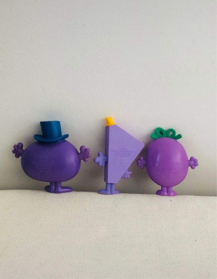 Achat aujourd’hui ? 💫 Départ du 📦 demain ! Lot de 3 figurines personnages - madame canaille avec son grand sourire - Monsieur pressé avec sa montre - Monsieur incroyable violet McDonald’s Année 2017 - 2018 Mot clé: collection mcdo jouet jeu enfant collectionneur m et mme jouer happy meal
