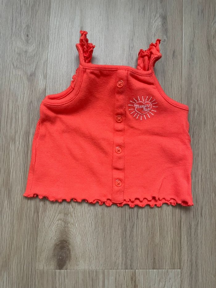 Débardeur Tape à l’œil corail en excellent état, porté une seule fois, taille 9 mois Collection récente