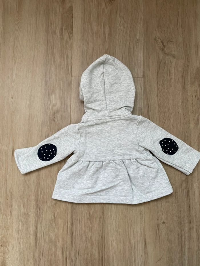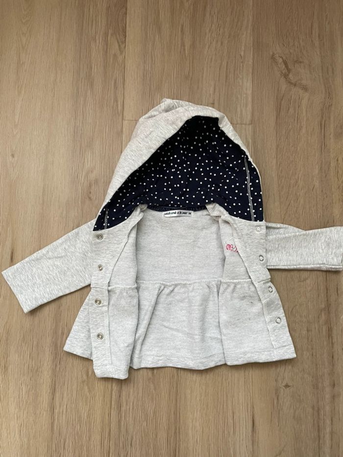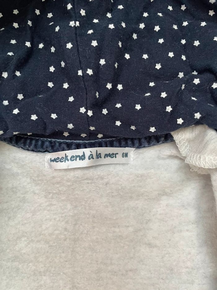 Gilet à capuche Week end à la mer gris avec boutons pressions en très bon état, taille 6 mois