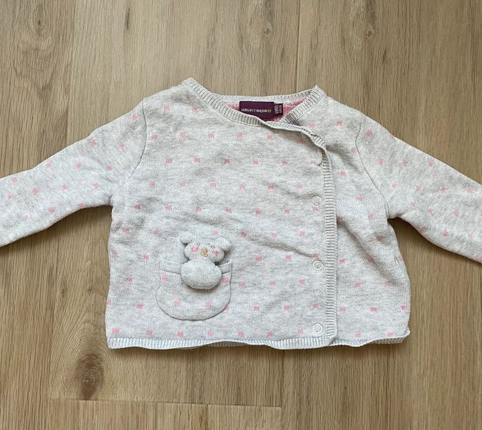 Ensemble Sergent Major gris avec du rose en très bon état, veste cache cœur et pantalon en taille 6 mois