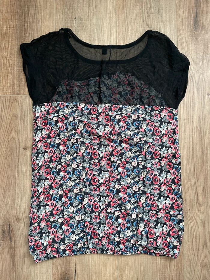 Blouse Pimkie noir et fleuris en très bon état, taille M