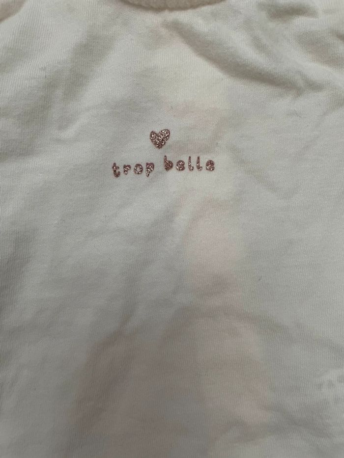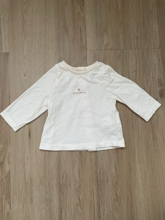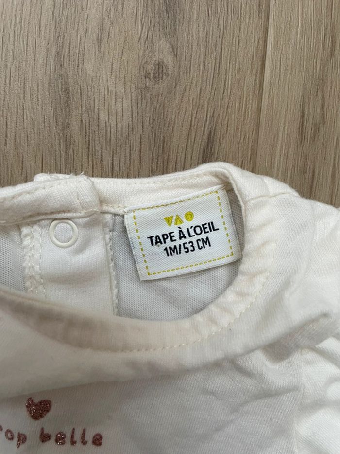 Tee shirt Tape à l’œil écru avec inscription « trop belle »en excellent état, taille 1 mois. Peu porté. Collection actuelle - neuf 3.99€