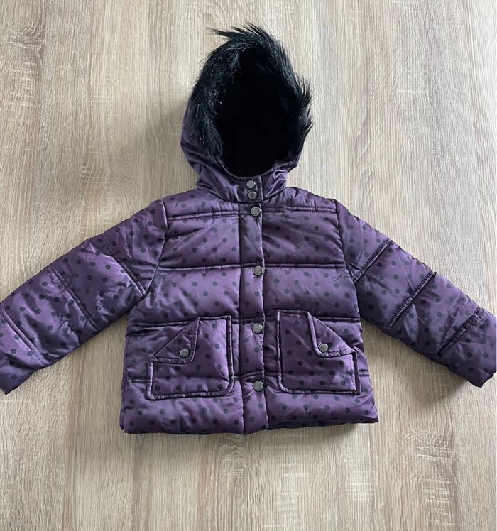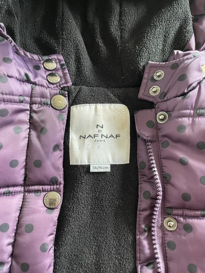 Manteau Naf Naf violet et noir en bon état. Taille 3 ans - 96 cm
