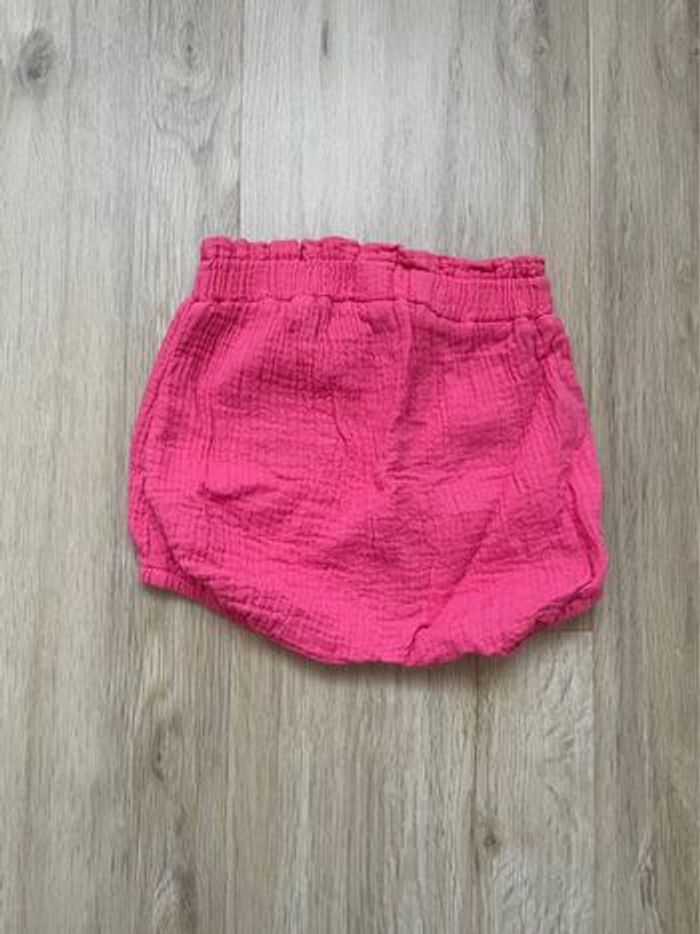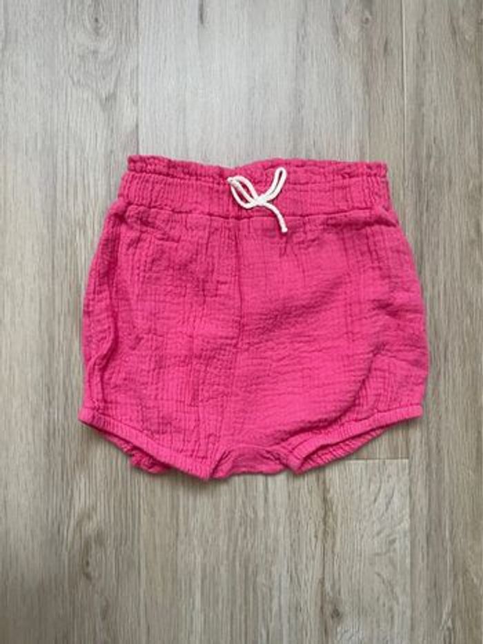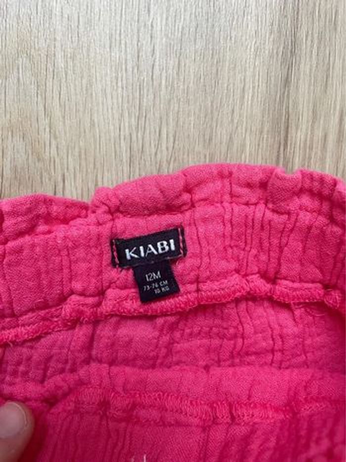 Short Kiabi rose en gaz de coton en excellent état. Peu porté, taille 12 mois