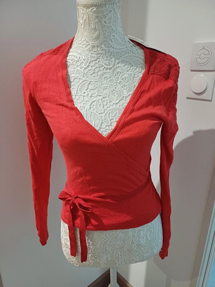 Pull Cache cœur à nouer camaïeu taille s neuf avec etiquette - photo numéro 2
