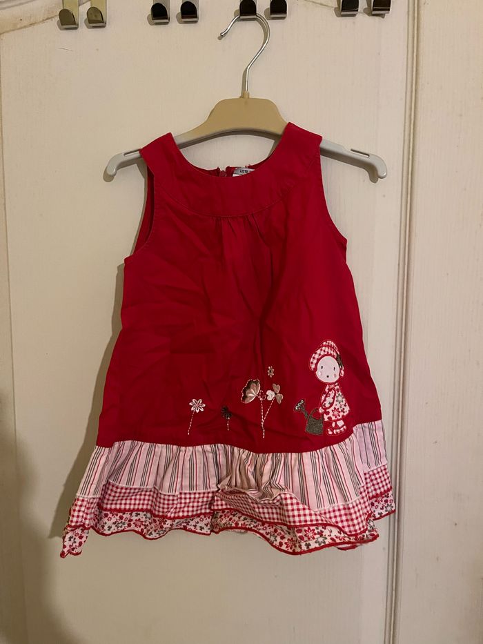 Vends robe rouge avec motifs en très bon état. Taille 12mois