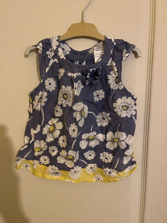 Vends robe bleu à fleurs blanche en très bon état. Taille 6mois