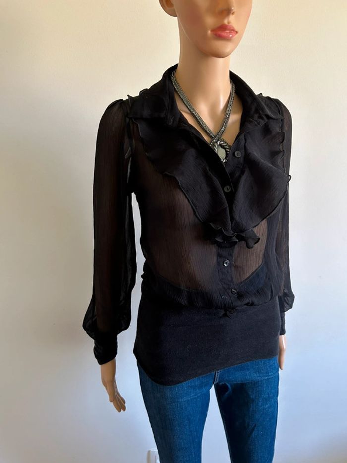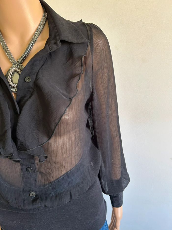 Chemisier noir transparent à manches longues Morgan taille 36 bon état