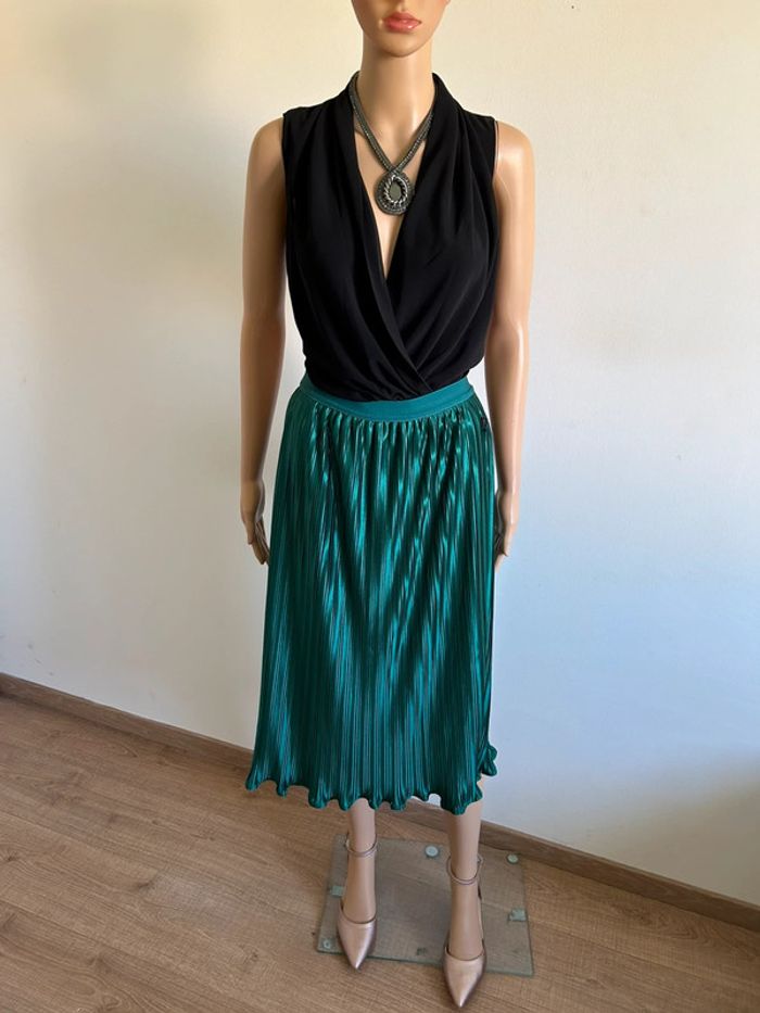 Jolie jupe verte plissée mi longue, de marque Yody. Taille M. Elle est neuve avec étiquette. taille 30 cms à 45 cms longueur 73 cms La taille est extensible Le prix reste négociable dans la limite du raisonnable. Un petit cadeau dans le colis 🌸