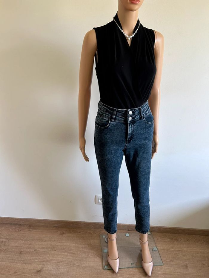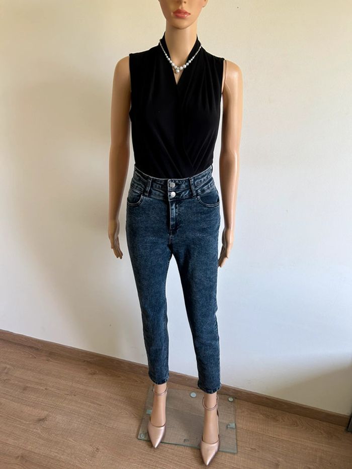 Très beau jean bleu marine pour femme, de marque Naf Naf. Taille 36. Peu porté, en excellent état. taille 33 cms à 38 cms longueur 96 cms longueur entrejambes 70 cms Le tissu est extensible Étiquette intérieure de composition coupée Le prix reste négociable dans la limite du raisonnable. Un petit cadeau dans le colis 🌸