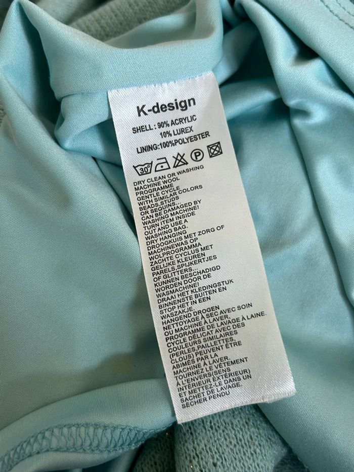 Jolie robe turquoise et dorée sans manches, de marque K-Design. Fermeture dans le dos. Taille M. Portée quelques fois, en très bon état. aisselle à aisselle 42 cms à 47 cms taille 38 cms et plus longueur depuis épaule 92 cms Le tissu est extensible 90% acrylique et 10% lurex Le prix reste négociable dans la limite du raisonnable. Un petit cadeau dans le colis 🌸