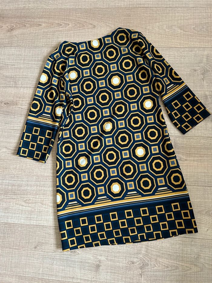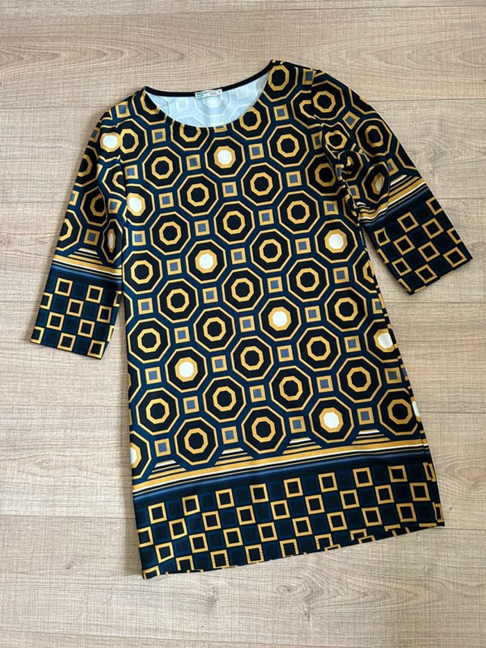 Jolie robe imprimée avec manches 3/4, de marque Made in Italy. Taille 46 mais qui taille petit et conviendrait plutôt à du 40/42 (voir mesures en dessous). Jamais portée, état neuf. aisselle à aisselle 51 cms épaule à épaule 40 cms taille 45 cms longueur depuis épaule 89 cms 95% polyester et 5% elasthanne Le prix reste négociable dans la limite du raisonnable. Un petit cadeau dans le colis 🌸