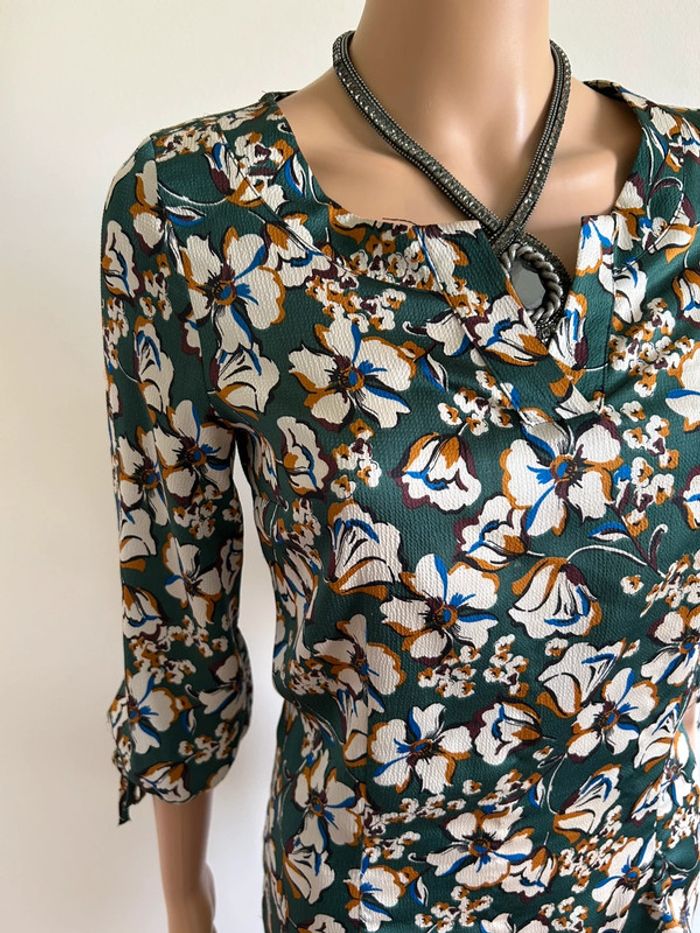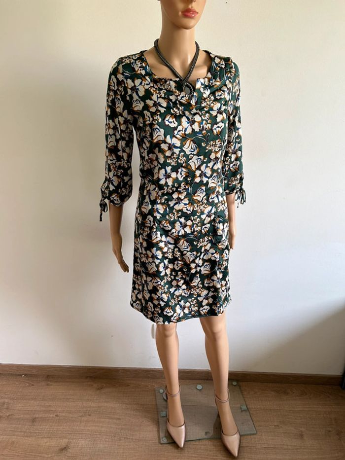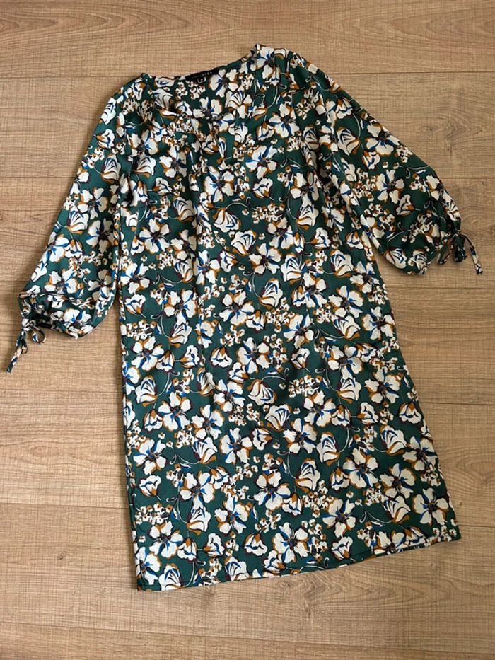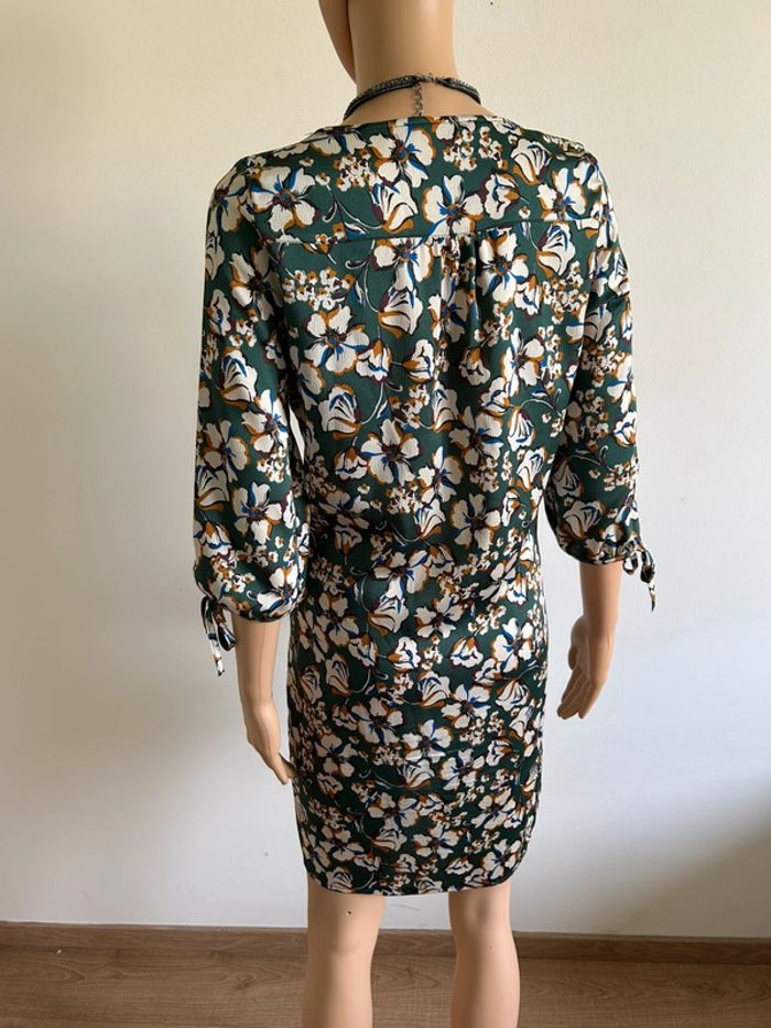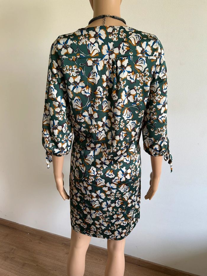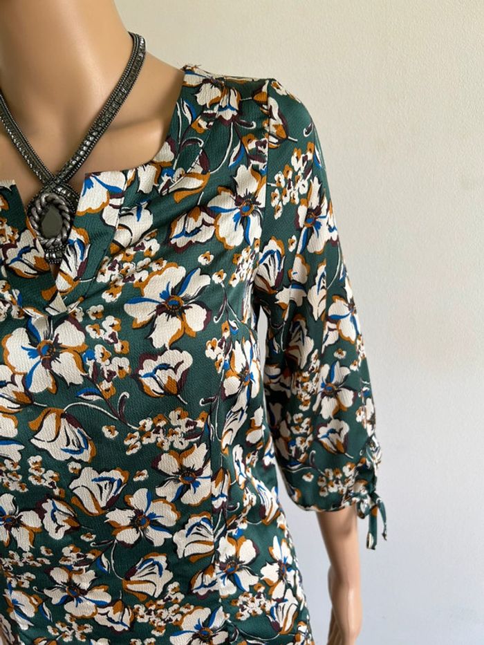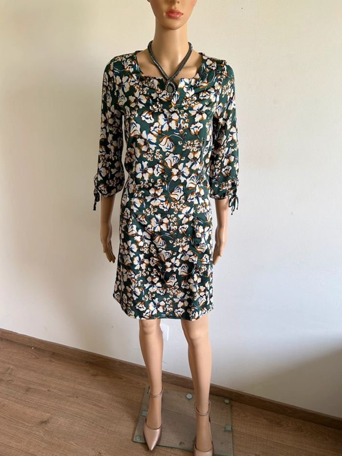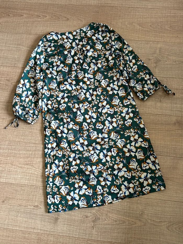 Jolie robe verte et fleurie avec manches 3/4, de marque LolaLiza. Taille française 38. Jamais portée, état neuf. aisselle à aisselle 47 cms épaule à épaule 36 cms taille 44 cms longueur depuis épaule 90 cms 100% viscose Le prix reste négociable dans la limite du raisonnable. Un petit cadeau dans le colis 🌸