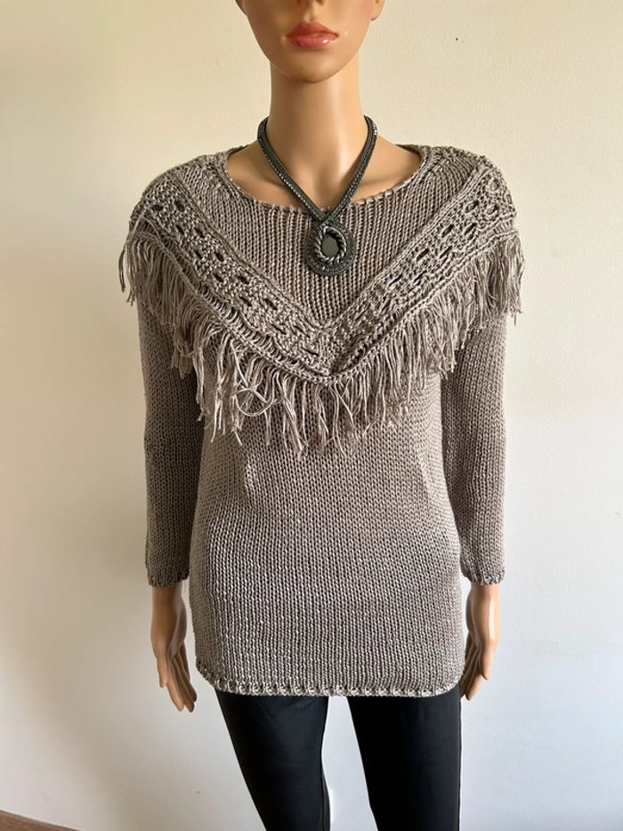 Pull gris avec manches 3/4 Atmosphere taille S TBE - photo numéro 3