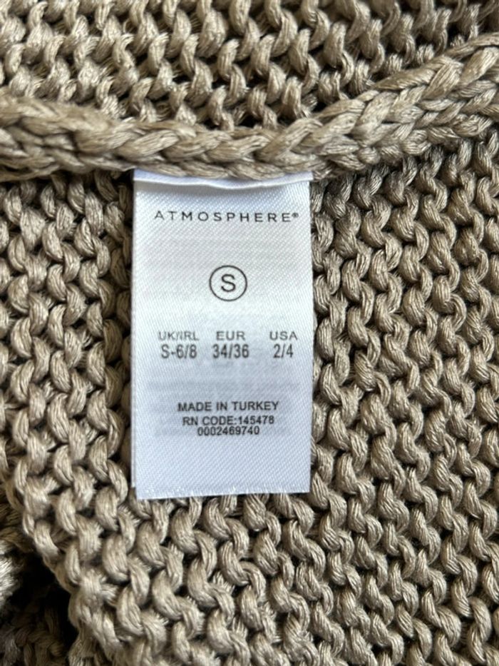 Jolie pull gris pour femme, avec manches 3/4, de marque Atmosphere. Taille S. Peu porté, en très bon état. aisselle à aisselle 47 cms et plus épaule à épaule 50 cms et plus taille 40 cmx et plus longueur depuis épaule 61 cms Le tissu est extensible 100% acrylique