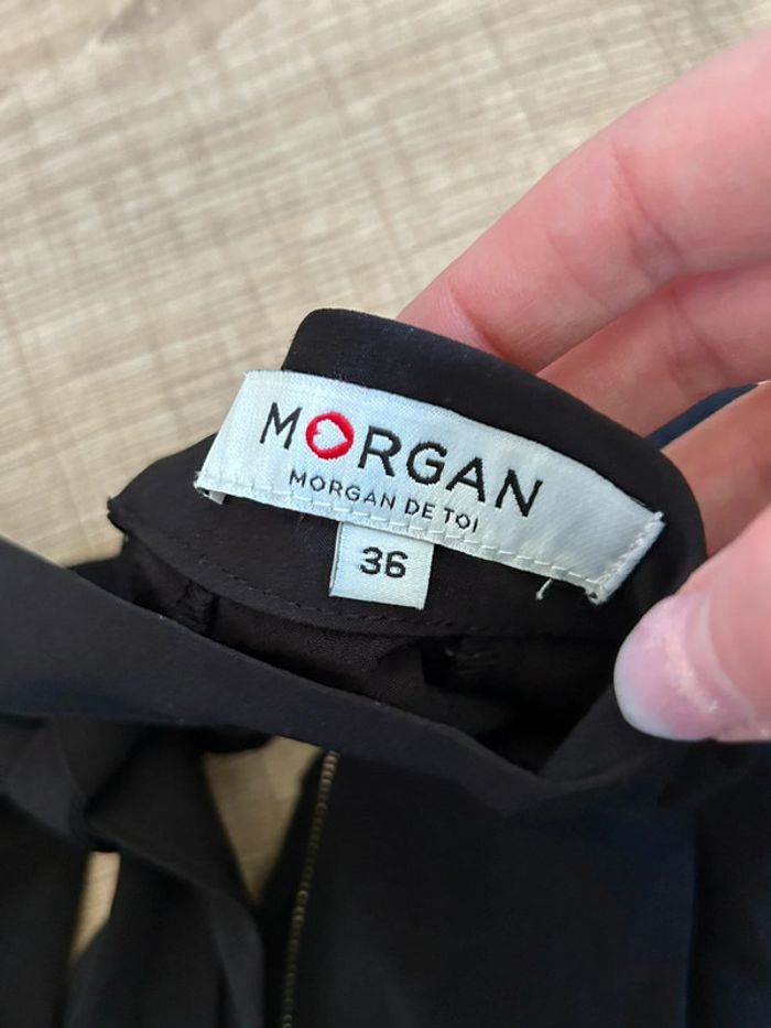Jolie blouse noire et dorée sans manches, de marque Morgan. Taille 36. Peu portée, en très bon état. aisselle à aisselle 44 cms taille 43 cms longueur depuis épaule 60 cms Étiquette intérieure de composition coupée Le prix reste négociable dans la limite du raisonnable. Un petit cadeau dans le colis 🌸