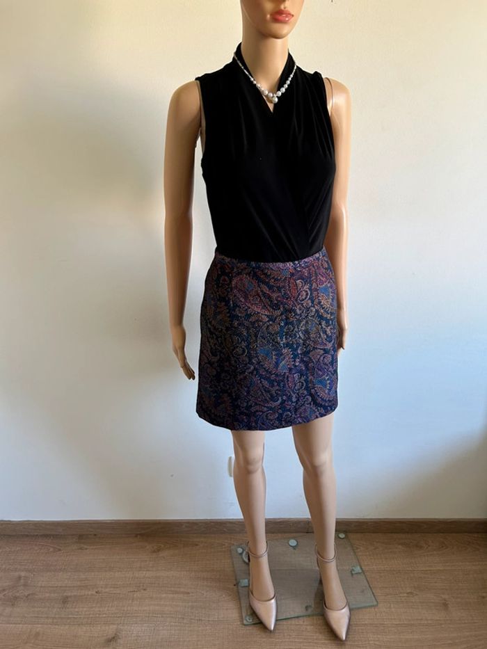 Jolie jupe imprimée pailletée de marque Morgan. Fermeture à l’arrière. Taille 42 mais qui taille petit (voir mesures en dessous). Elle est neuve avec étiquette. taille 40 cms longueur 43 cms 63% polyester, 31% viscose, 3% fil métallisé, 2% autres fibres et 1% polyamide Le prix reste négociable dans la limite du raisonnable. Un petit cadeau dans le colis 🌸