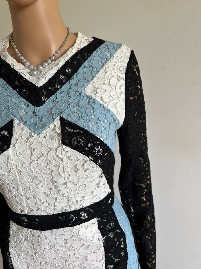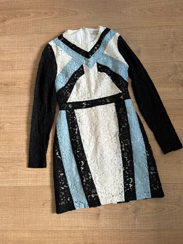 Magnifique robe en dentelle à manches longues, de marque Morgan. Fermeture dans le dos. Taille 36. Jamais portée, état neuf. aisselle à aisselle 42 cms épaule à épaule 38 cms longueur manches 62 cms taille 36 cms longueur depuis épaule 86 cms 65% coton et 35% polyamide Le prix reste négociable dans la limite du raisonnable. Un petit cadeau dans le colis 🌸