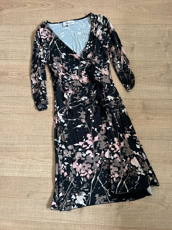 Jolie robe noire et imprimée fleurie à manches courtes, de marque Armand Thiery. Taille 36. Portée quelques fois, en très bon état. aisselle à aisselle 38 cms à 43 cms épaule à épaule 36 cms et plus taille 31 cms à 37 cms longueur depuis épaule 92 cms Le tissu est extensible Étiquette intérieure de composition coupée Le prix reste négociable dans la limite du raisonnable. Un petit cadeau dans le colis 🌸