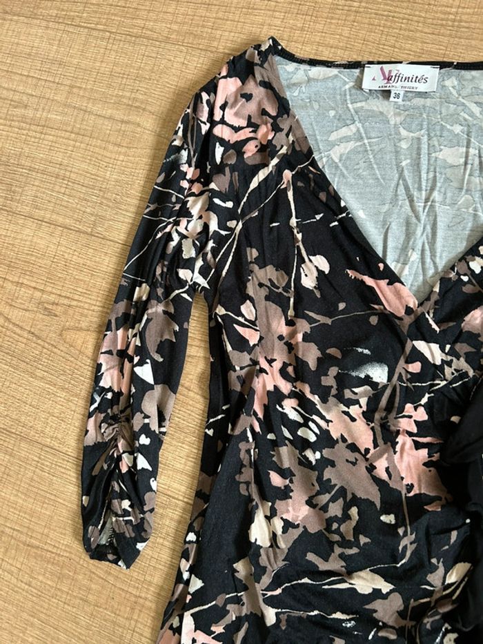 Robe noire et imprimée à manches courtes Armand Thiery taille 36 TBE - photo numéro 3