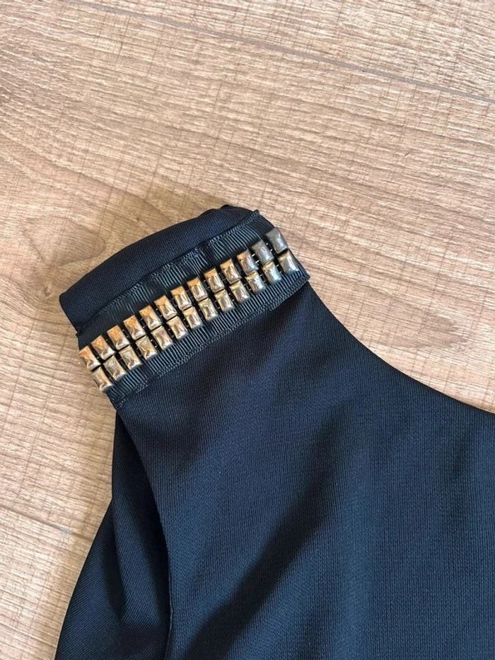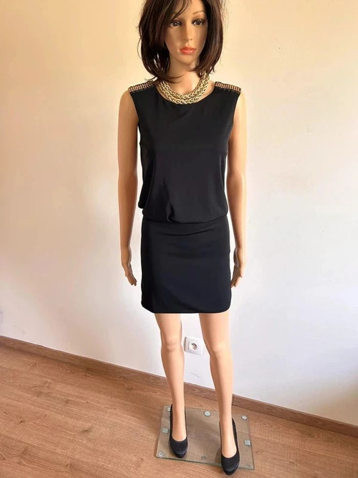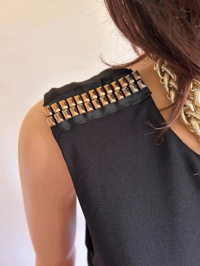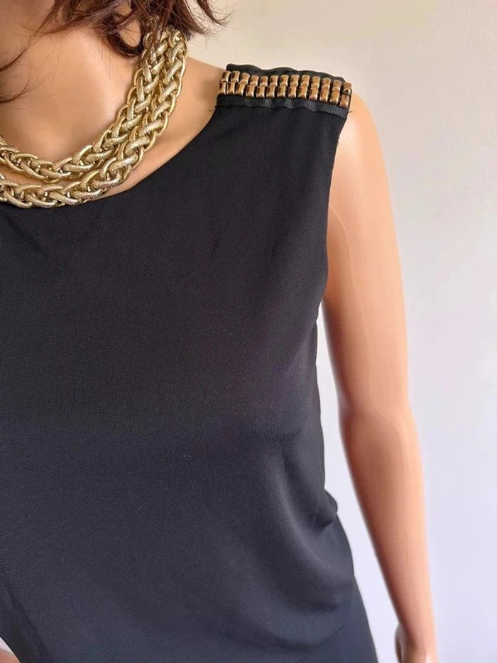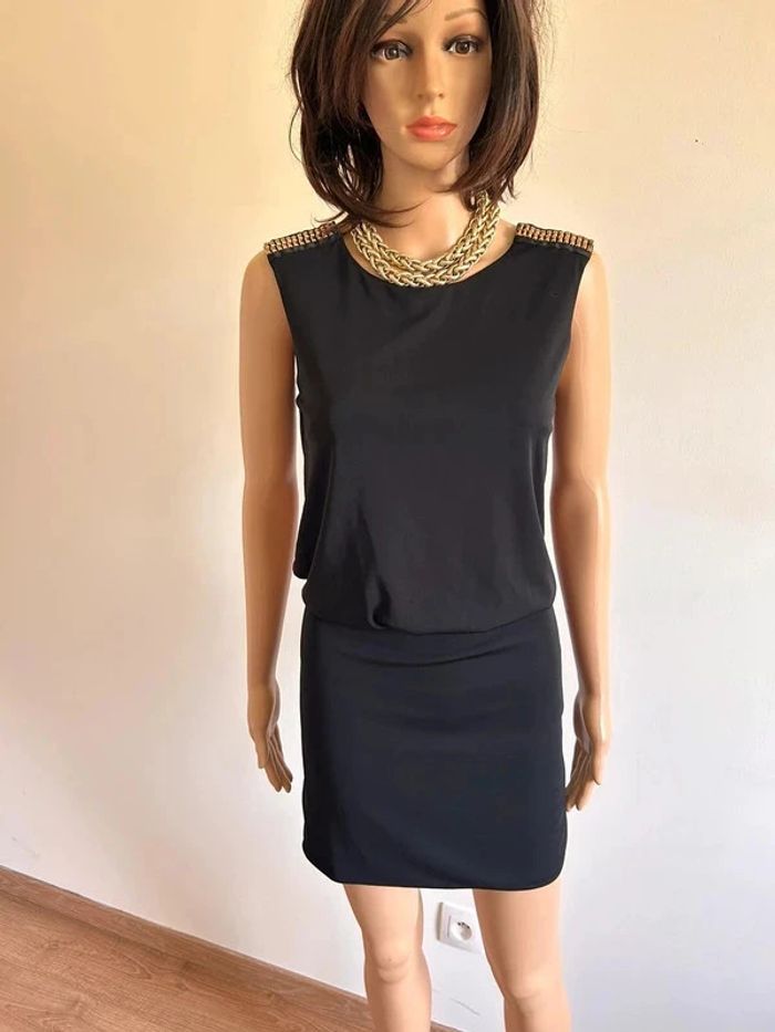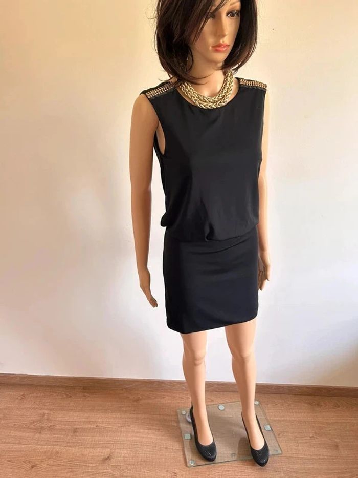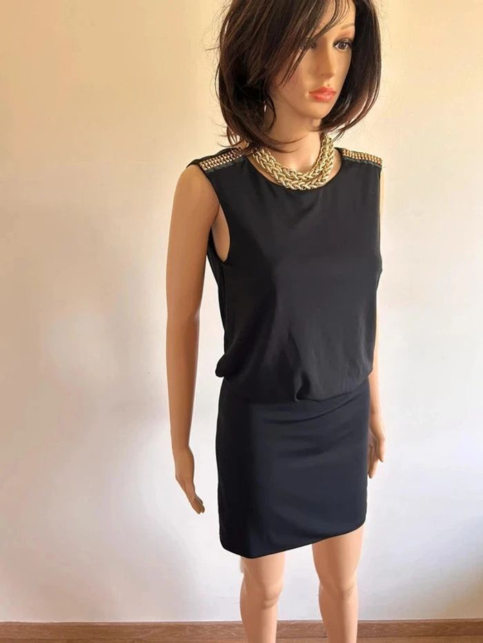 Jolie robe noire sans manches, avec rivets dorés au niveau des épaules, de marque Morgan.