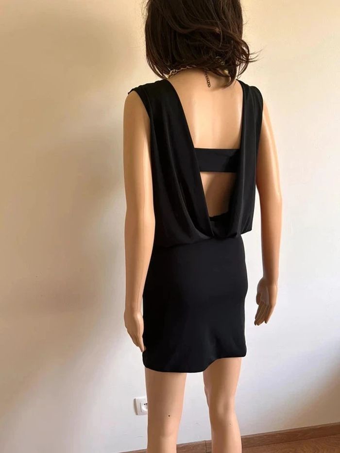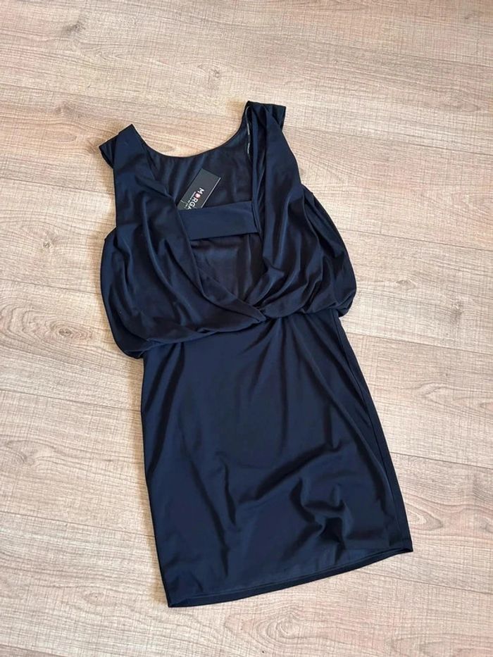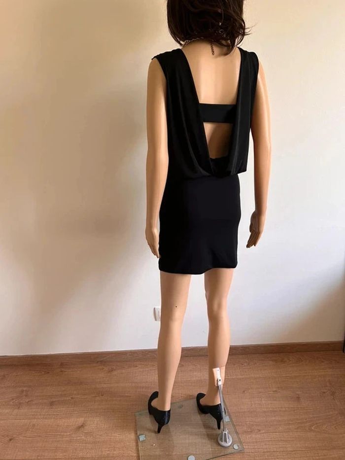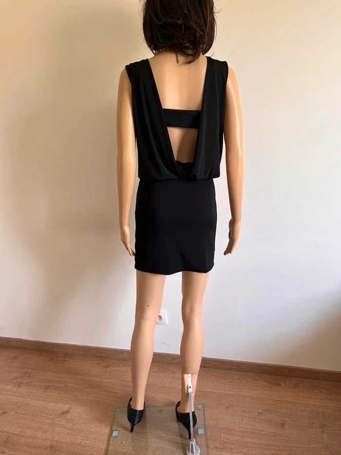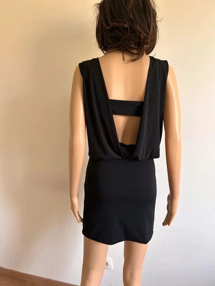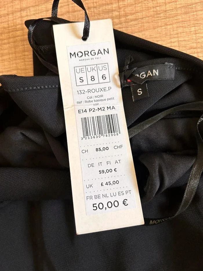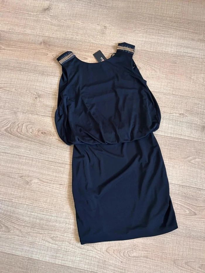 Jolie robe noire sans manches, avec rivets dorés au niveau des épaules, de marque Morgan.